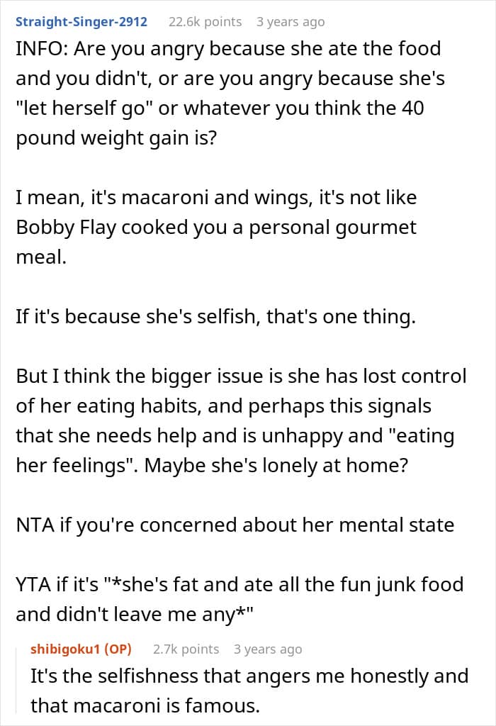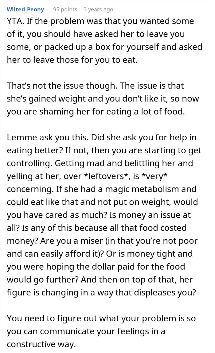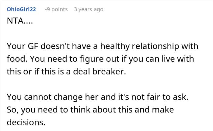 Sadly, however, not everyone is open to the idea of their partner gaining weight. Clearly, the author of this story doesn’t like the fact that his girlfriend isn’t the same size she was when they first met. And readers have been giving him a reality check.