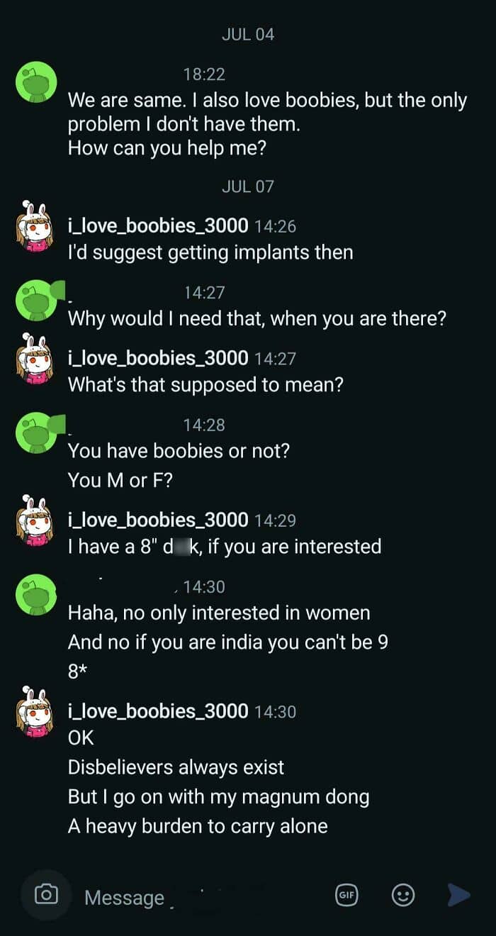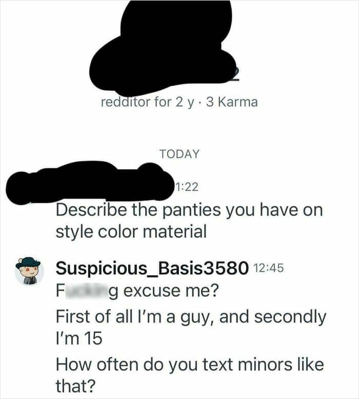 Basically I was posting about my hair and this creep pm’ed me and found out I was a man not a girl , I’m also 17 not 18 but I could see where the conversation was going so I said that instead . I also don’t want this f*****g specimen to have my actual age.