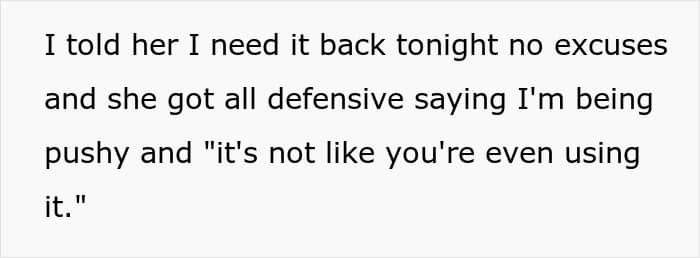 The situation with the sister keeping the OP’s car for several days illustrates a common problem highlighted by DoSayGive. They note that people often hold on to borrowed items longer than agreed, sometimes because they forget the return timeline, become accustomed to having the item, or act without consideration for the owner’s property.