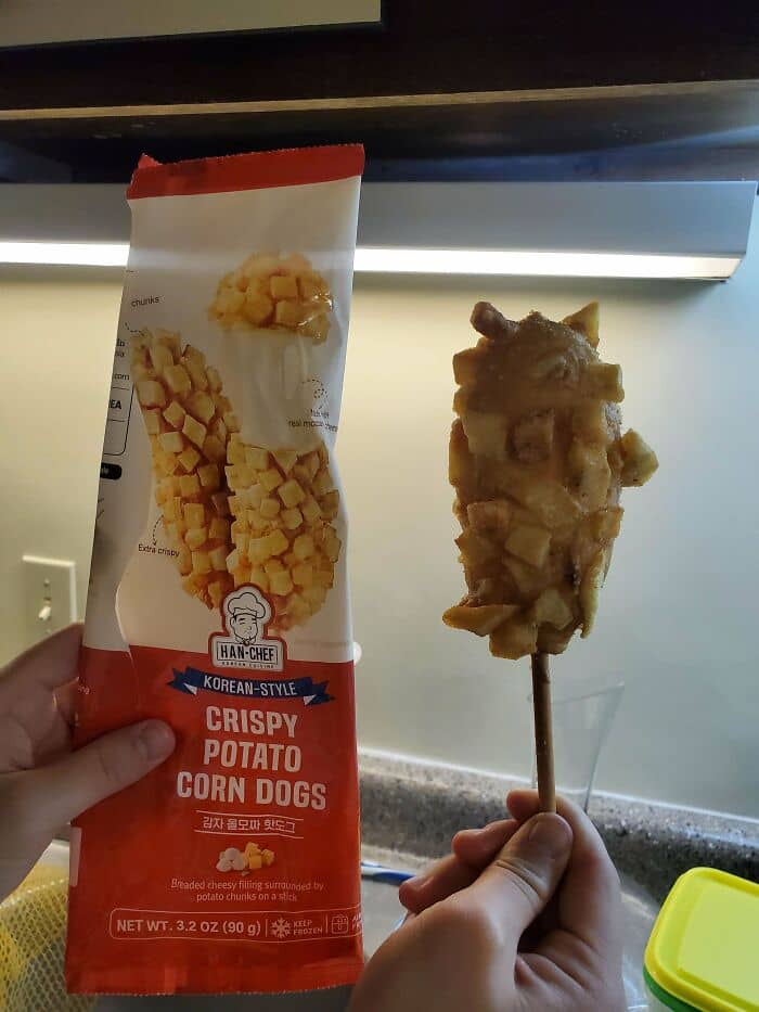#70 Kim’s Choice Potato Corn Dog, 8 Corn Dogs. The Packaging Is Ginormous Compared To The Real One. Seriously?