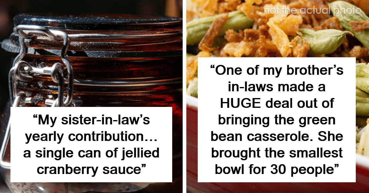 My cousin and his now ex wife showed up one year with a can of corn… Like the Great value 15oz can. One can for 15 people…