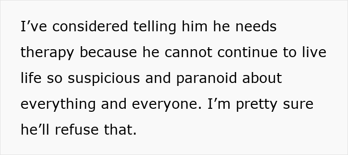 When the poster realized that their future kids would also be affected by her partner’s paranoia, she felt that he needed to at least consider therapy for his behavior