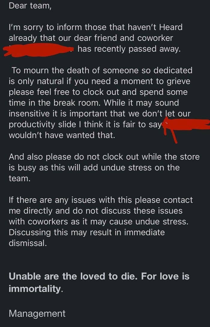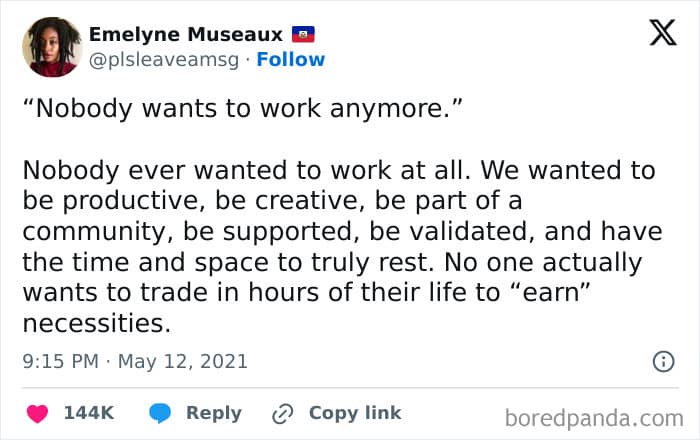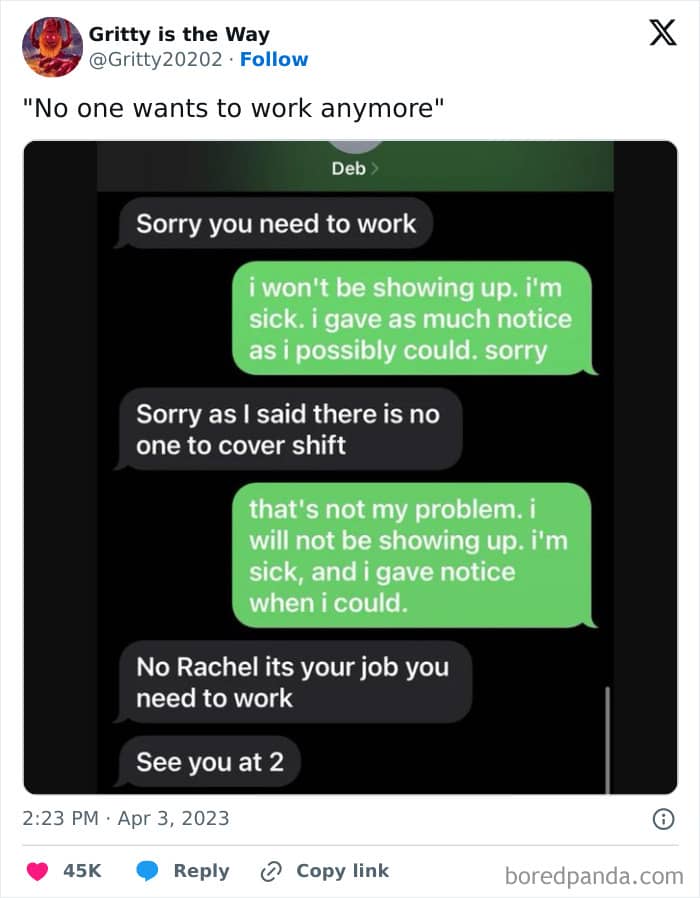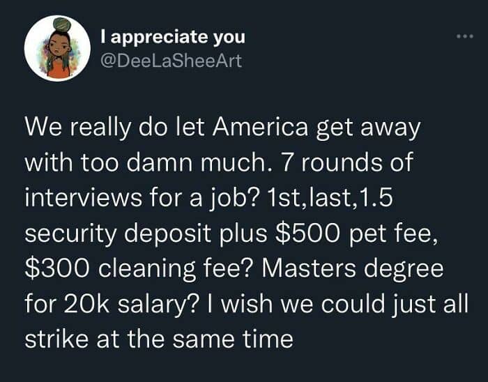 It’s so f**king gross that people applaud this shit. We shouldn’t have to do this. We shouldn’t have to because we’re broke, or because they’re short staffed, this isn’t okay. I’m so sick of society deep throating overwork.. instead of paying what people should be paid & prioritizing mental health & family s**t like this is applauded or like when I was a single mom and worked 3 full time jobs to stay afloat literally seeing my kids 15 min at a time in between naps and breaks. No THANK you.