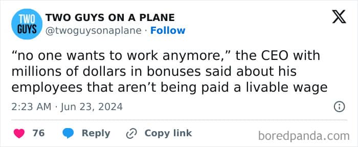 I got a $0.25 raise this year which absolutely is not keeping pace with inflation. And then I walk into work and see the owner’s new toy