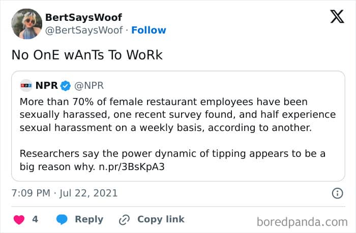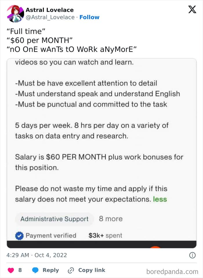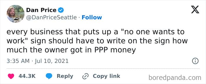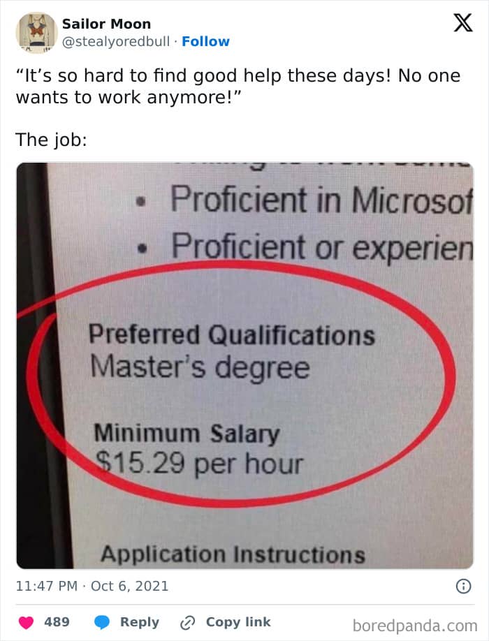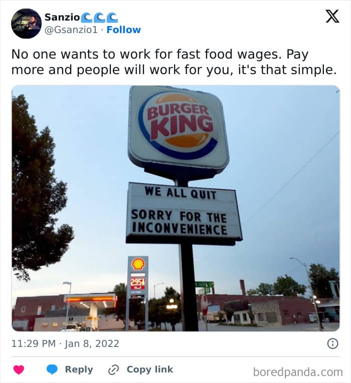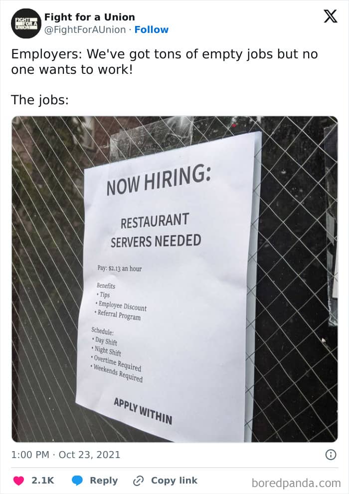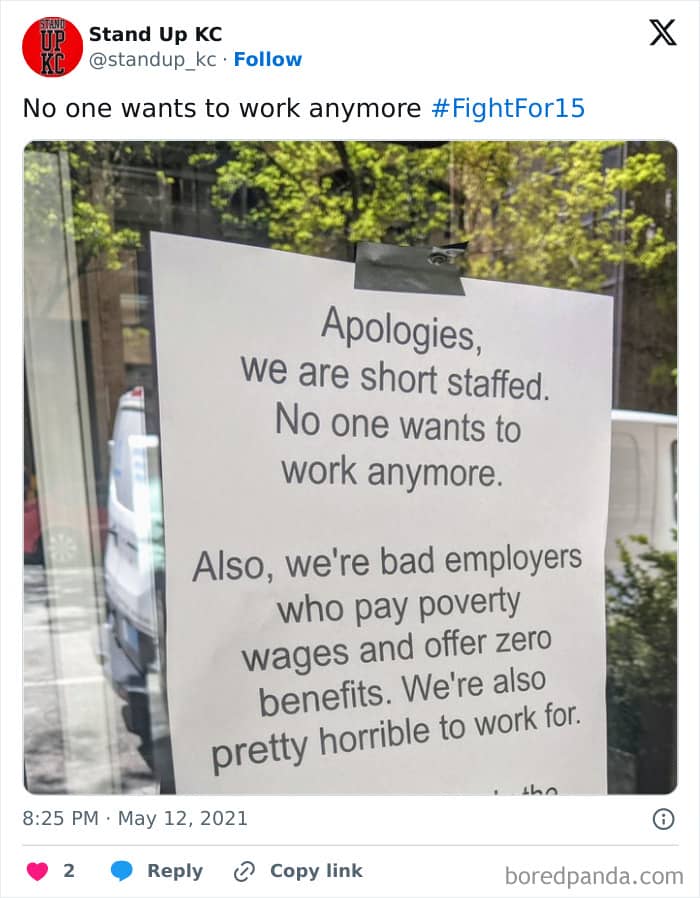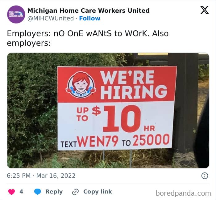 I bet it’s posted right next to a sign complaining that no one wants to work anymore
