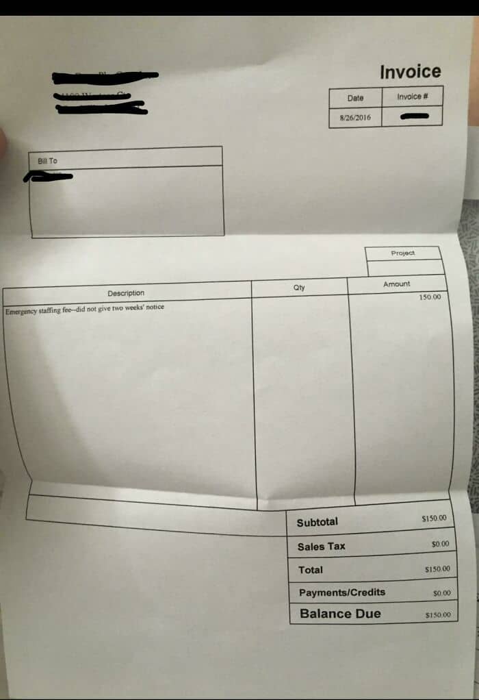 Several years ago I quit without a full two week notice and the company sent me this invoice a few weeks later