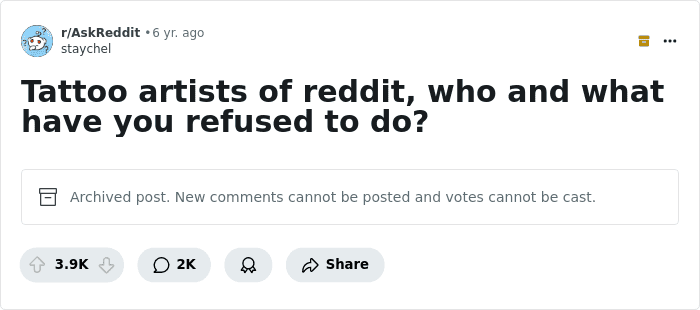 Has a tattoo artist ever refused service to you? Or maybe you’ve refused it to someone? Please, share all your stories with us!