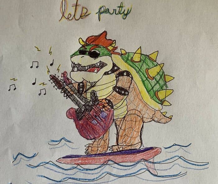 This guy who wanted a surfing bowser playing a guitar wearing sunglasses.