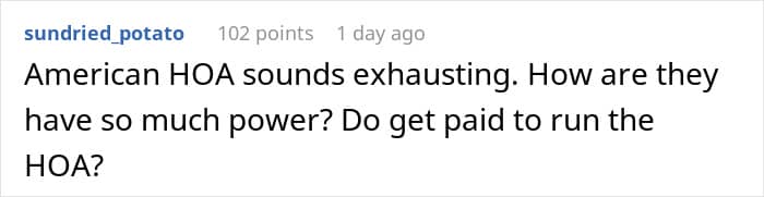 They advised that the siblings should check the HOA regulations to verify whether it was true, but OP couldn’t find it in their documents. A couple of months later, the poster gave a very bold update about how they tackled the situation. After asking the HOA to share the regulations multiple times, they finally got their hands on it, and saw that it was true.