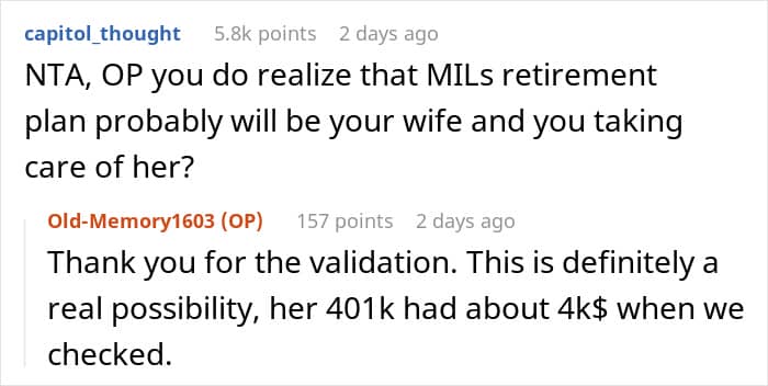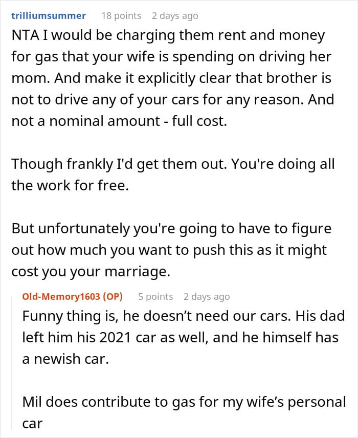Many people also warned OP that if the mother and son keep living and mooching off them, it might cause trouble in their marriage. Folks suggested that the healthiest option would be to set boundaries with them at the earliest. Do you agree with their advice? We would love to hear your thoughts about the story, so feel free to type them away in the comments section!