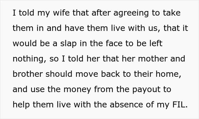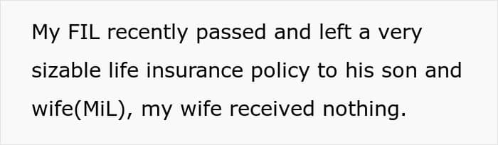 When they got their father’s life insurance, the mother and brother got everything, while the poster’s wife didn’t get a single penny