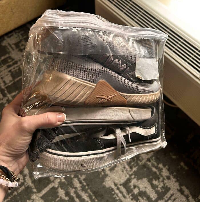 #18 Unavoidable Bedding Plastic Makes Great Travel Shoe Storage