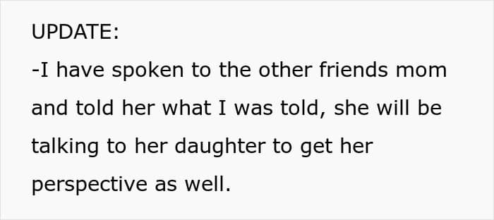 Later, the mom shared an update after speaking to the other mothers involved