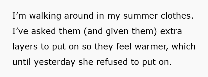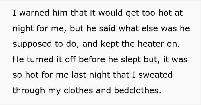 Her in-laws also couldn’t stand the cold, so her husband kept turning on the heater even though his wife felt extremely hot