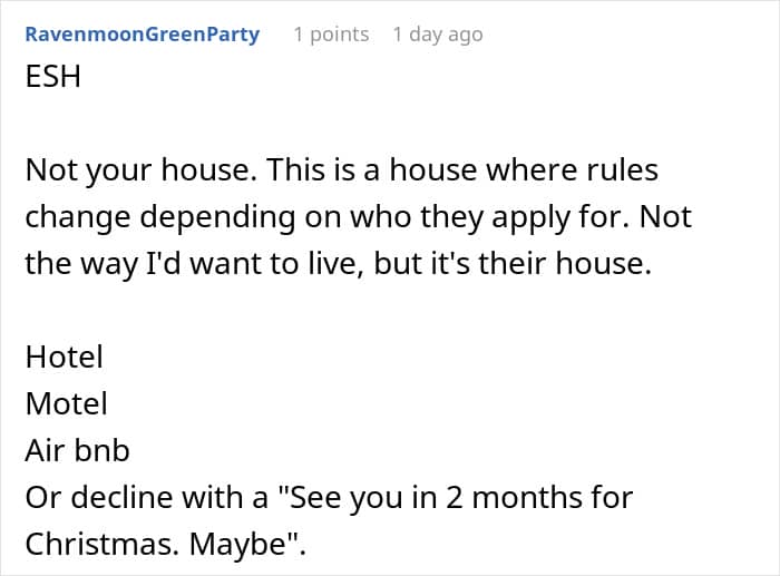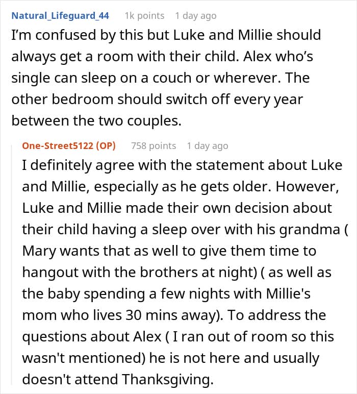 We were also curious as to why no one in the family ever offered to stay in a hotel or Airbnb. “As I address in my update, the big driving factor in no hotel (other than the parents not wanting that) is that each evening, until late into the night, all the kids play board games and drink,” the author explained. “Where they live, the closest hotel is about an hour away, and there are no Ubers.”
