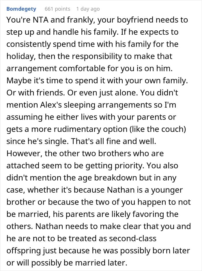 As far as what she thought of the replies to her post, the OP said she appreciated the comments, as she feared that she was overreacting. “But based on most comments, I was under reacting, which was a surprise to me,” she shared.