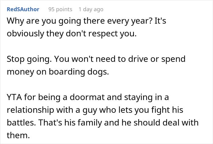 Some readers took the author’s side and suggested that she and her boyfriend enjoy Thanksgiving in their own home