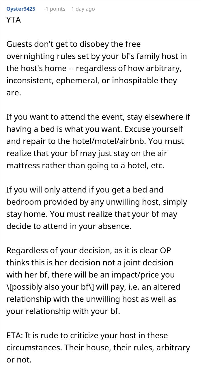 RELATED:This woman was excited to finally sleep in a comfortable bed at her boyfriend’s parents’ house