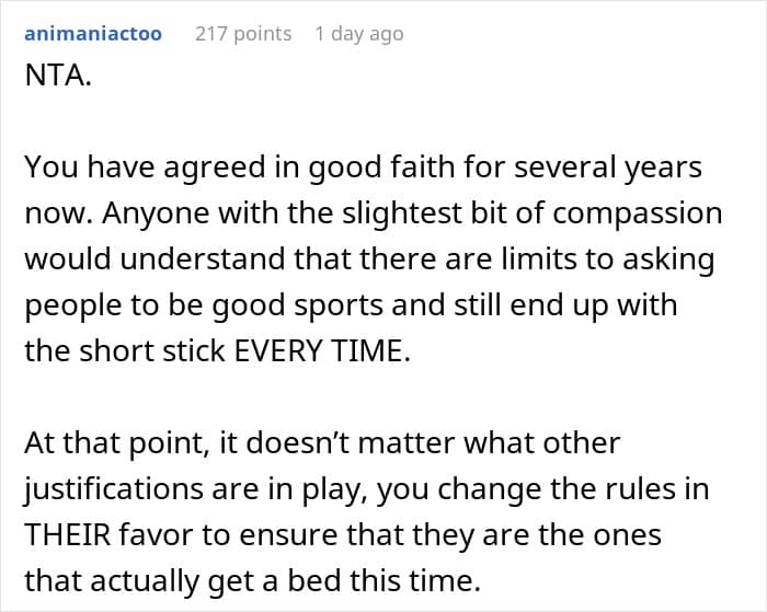 We would love to hear your thoughts on this situation in the comments below, pandas. Do you think this woman did anything wrong by standing up for her right to have a comfortable bed? Feel free to share, and then if you’re interested in checking out another We piece featuring family drama during the holidays, look no further than right here!