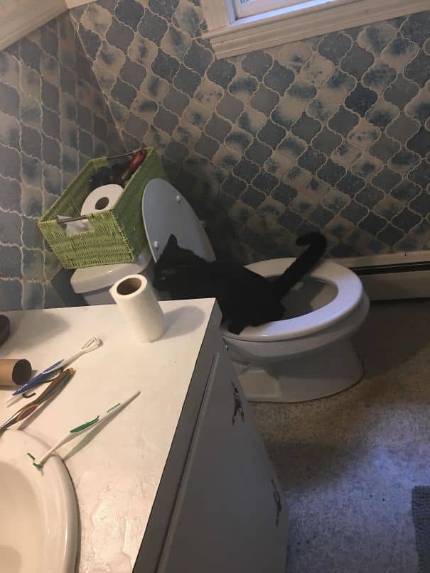 #15 My Friend Came Home From A Mini-Vacation And Forgot To Change The Kitty Litter. This Morning She’s Brushing Her Teeth And Hears A Little Tinkle