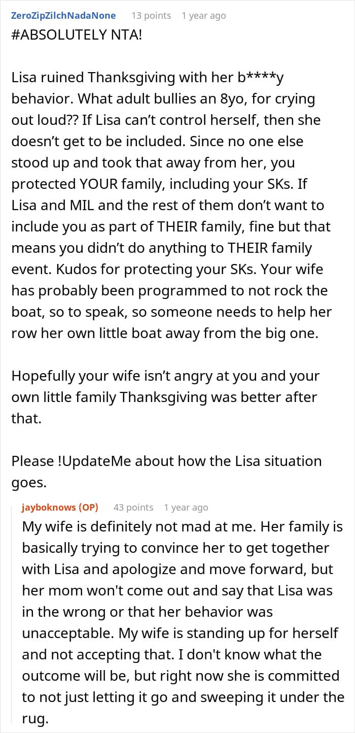 One man vented online about the nightmare family Thanksgiving he attended. What started as a wholesome and playful get-together soon warped into something awful, as his toxic sister-in-law started ranting about his wife and kids. Having had enough, he went full-on protector mode and stepped in to stop the nonsense. Read on for the full story. Meanwhile, We has reached out to the author, and we’ll update the article once we hear back from him.