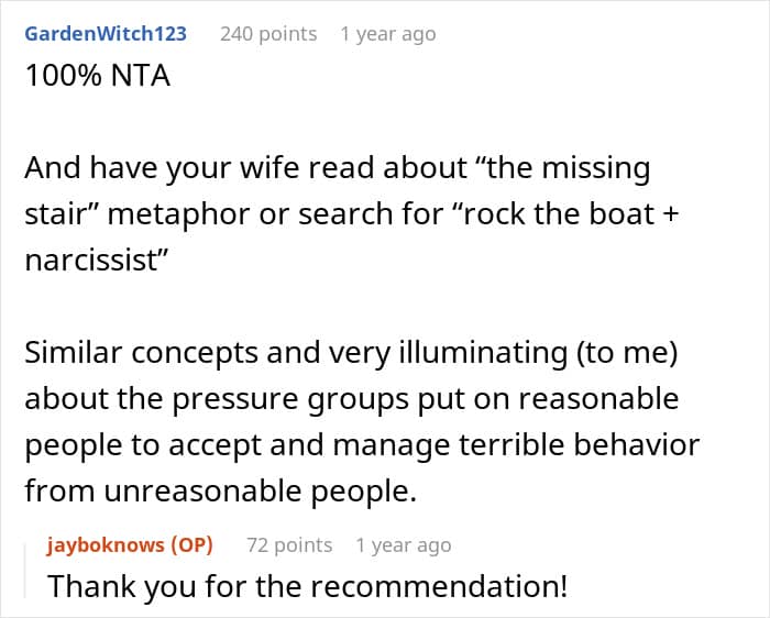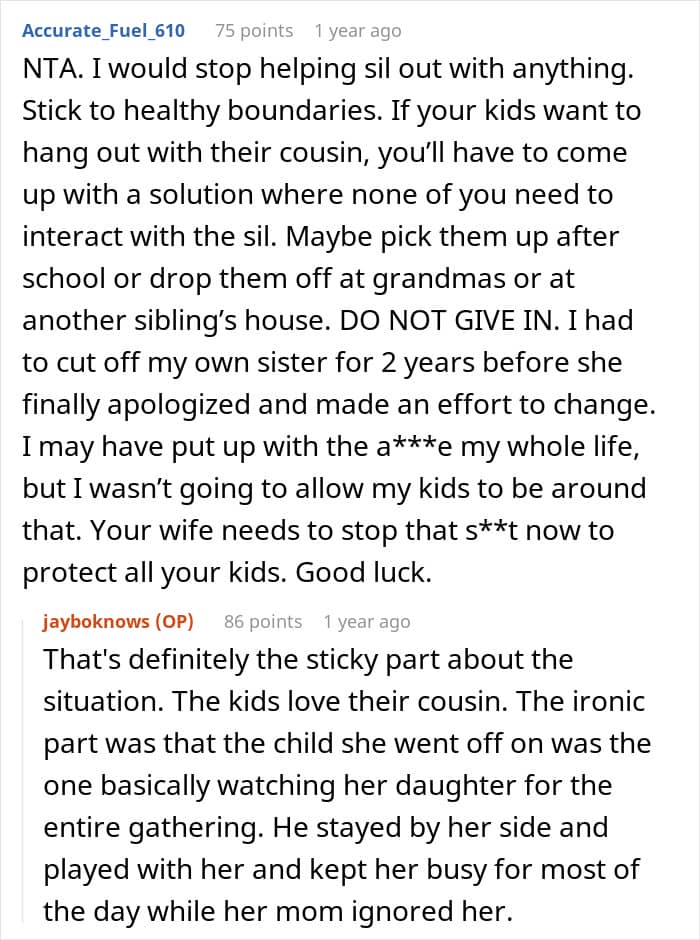 Meanwhile, other readers also rushed to express their admiration for how the author finally enforced some healthy boundaries with his sister-in-law
