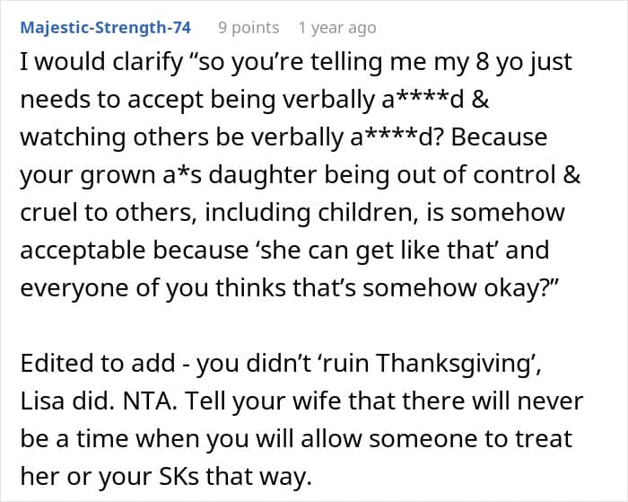 One man wanted to know if he was wrong for calling out his judgmental, insulting sister-in-law, who has a penchant for vile rants, at his family’s Thanksgiving feast