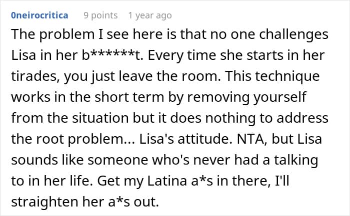 Nobody should have to be a victim of the sort of behavior that the sister-in-law in the post perpetuated. Hypocritical, insulting, judgmental, truly toxic rants shouldn’t be tolerated.