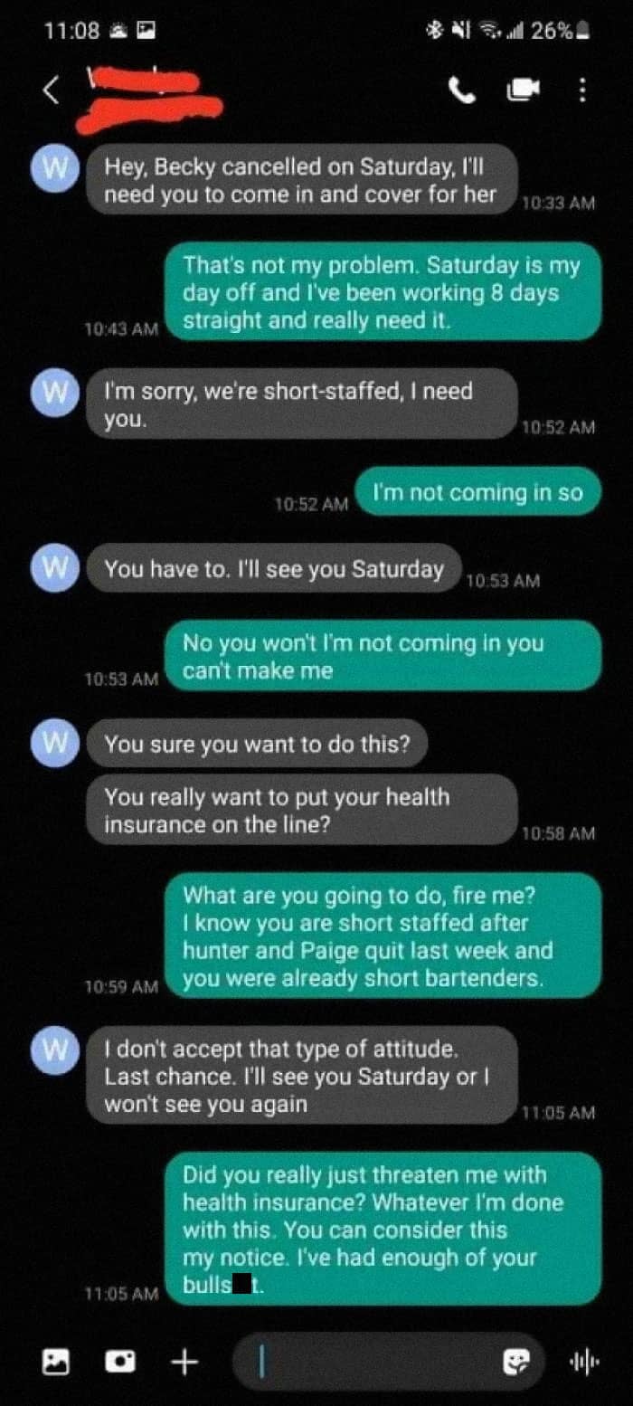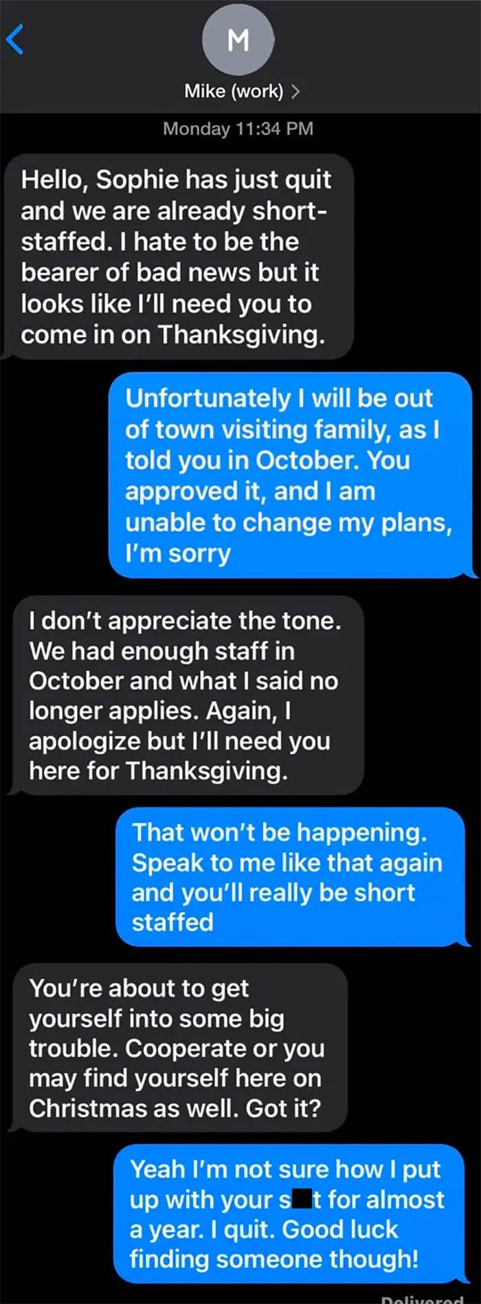#19 Boss Wanted Me To Come In On Days That I Requested Off. Then Threatened Me When I Said No
