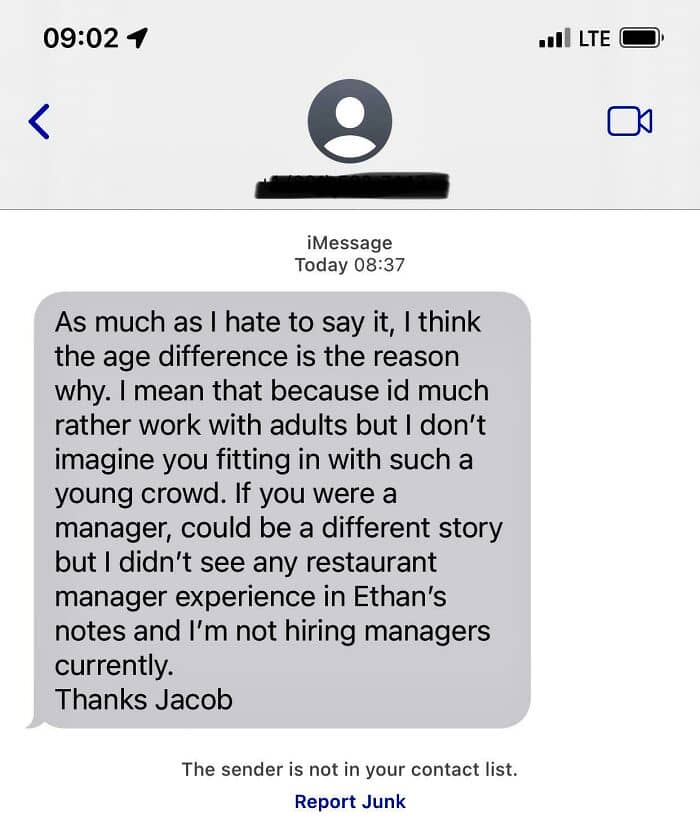 #49 I’m 41 And Job Hunting, Applied At A Large Fast-Casual Restaurant Chain For An Entry-Level Position. The Manager Sent Me This The Next Day…