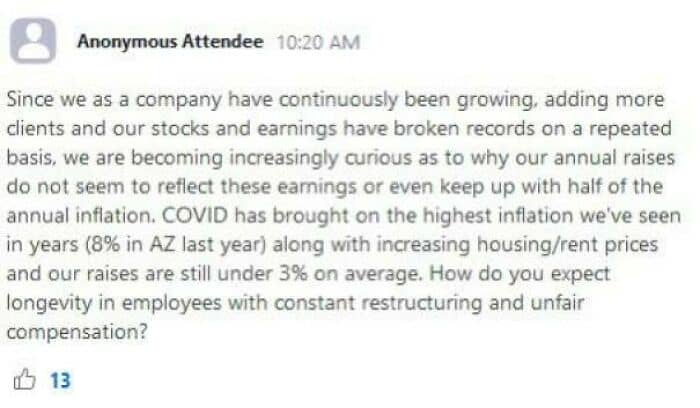 #36 I Did It. Posted This Question For My Entire Company To See During A Meeting – Seeing The Reactions In The Faces Of The Execs Was Amazing. It’s Up To 20 Likes Within 14 Minutes