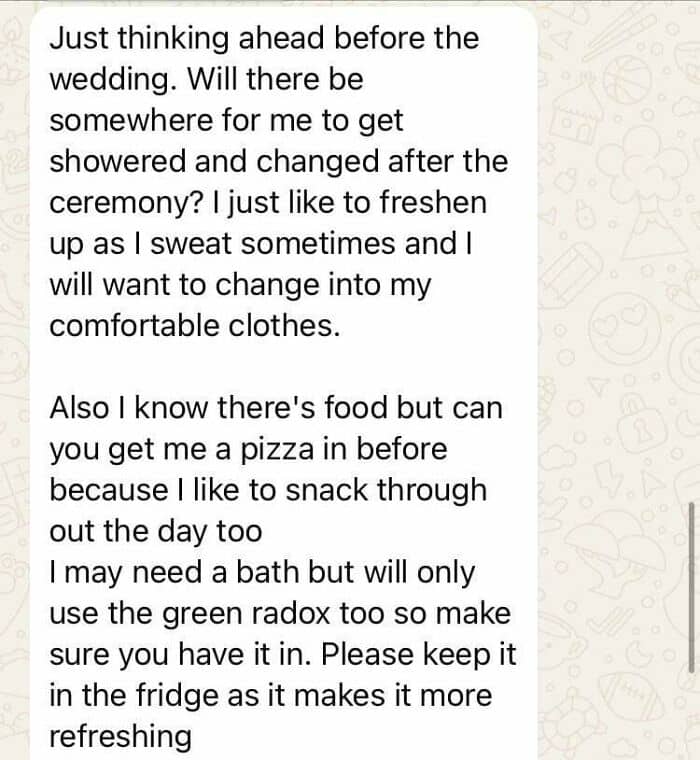 #36 My Friend Got A Late Diagnosis Of Adhd And Has Become Super Entitled With It Wanting Everything To Be Inclusive. I Am Ok With This Bit Feel His Demands Are Too Excessive And Demanding. For Reference I Haven’t Seen Him In 5 Years. Got These Messages Out Of The Blue And The Wedding Is In A Week