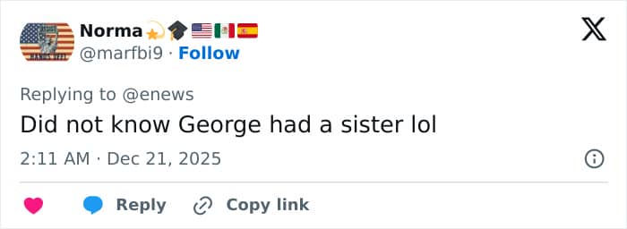 Due to Ada’s rare public appearances, some social media users expressed surprise, with one saying, “Never heard of her,” and another writing, “Did not know George had a sister lol.”