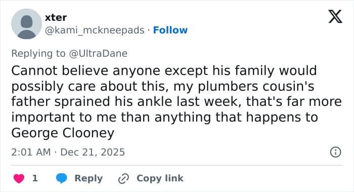 Several fans of Clooney sympathized with the star’s loss as one wrote, “So very sad. May her memory be a blessing to all that loved her,” while another added, “What a beautiful soul, sending love to the Clooney family.”