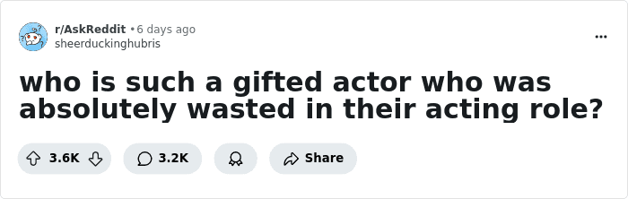 And folks had a lot of names to share—from well-known actors who didn’t quite fit one role or another to thespians who might’ve disappeared into obscurity after one convincing but unpopular role. See people’s opinions below, and don’t forget to share the talented actors you’d like to see in more roles!