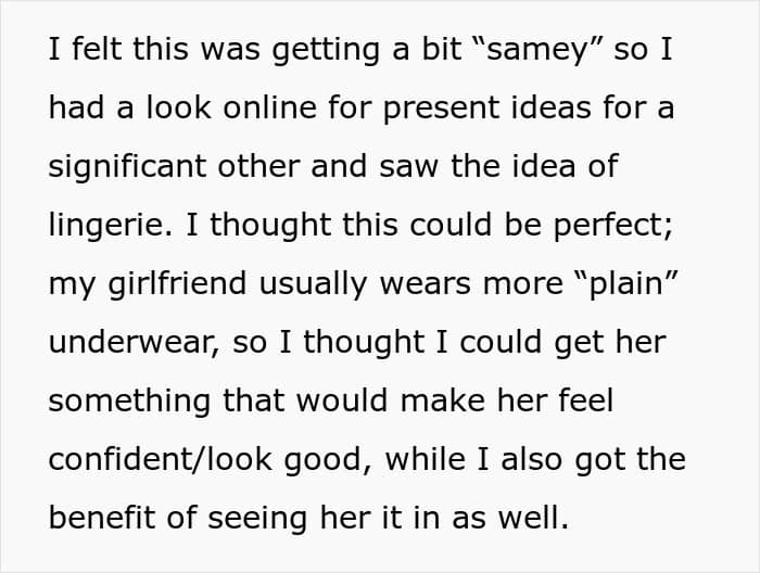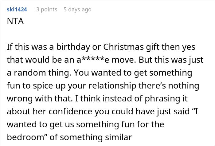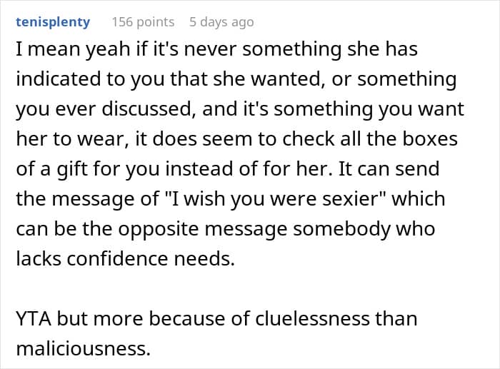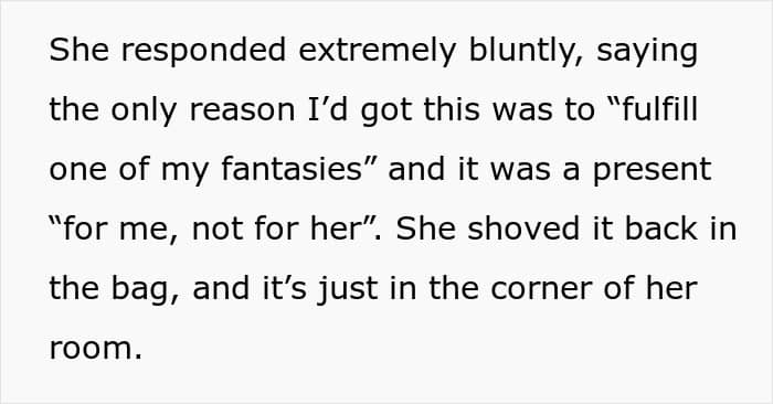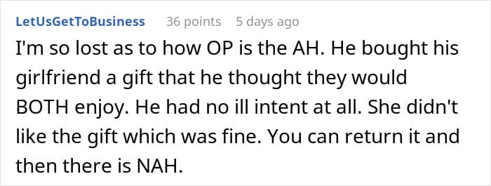 Some readers took the girlfriend’s side, telling the man they weren’t convinced the present wasn’t for him