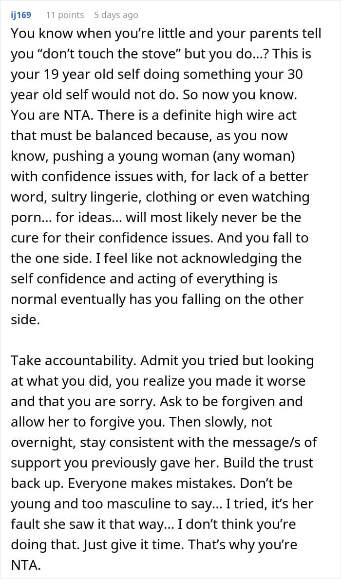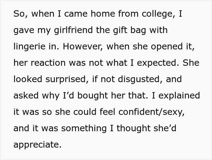 One man recently learned that lesson the hard way, after surprising his girlfriend with a gift that he thought would make her feel more confident. Below, you’ll find the full story that he shared on the “Am I the [Jerk]?” subreddit, as well as a conversation with Tina Wilson, relationship expert and founder of the dating app Wingman.