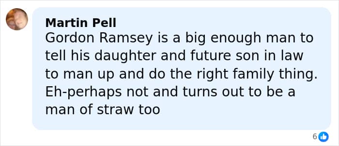 “Gordon Ramsey’s like a spoilt man-child. Petulant, arrogant and immature. He’ll dominate that marriage,” wrote one social media user.