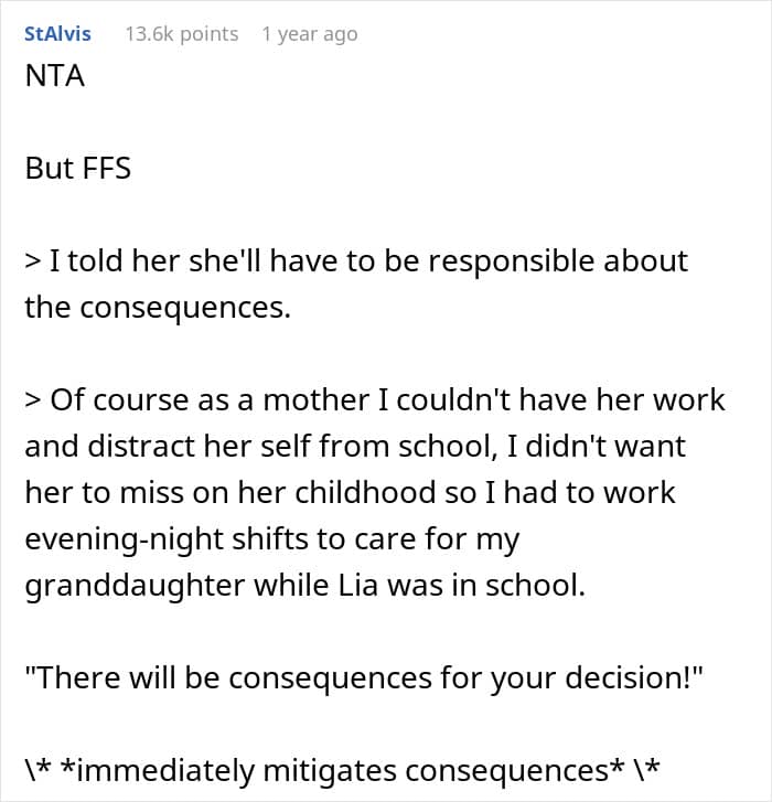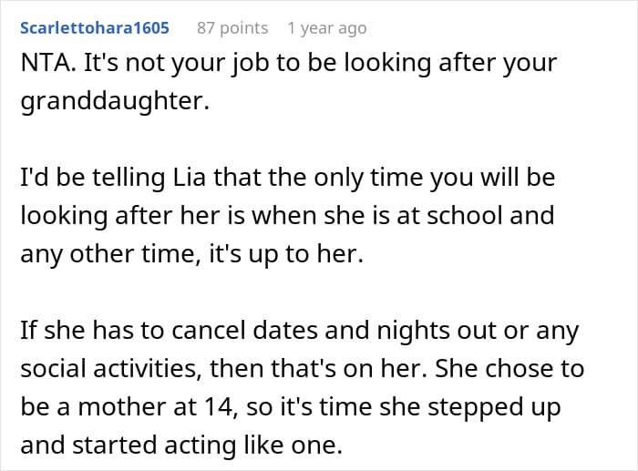 This grandma, however, was asked out for Valentine’s and planned to go, despite her daughter who’s a teen mom thinking she would babysit instead. After a dramatic exchange of insults, the young grandmother decided to ask for unbiased opinions: was she wrong to not let her daughter go out for Valentine’s and look after her baby herself?