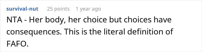 Most people didn’t think she was being selfish but cautioned her to be stricter with her daughter