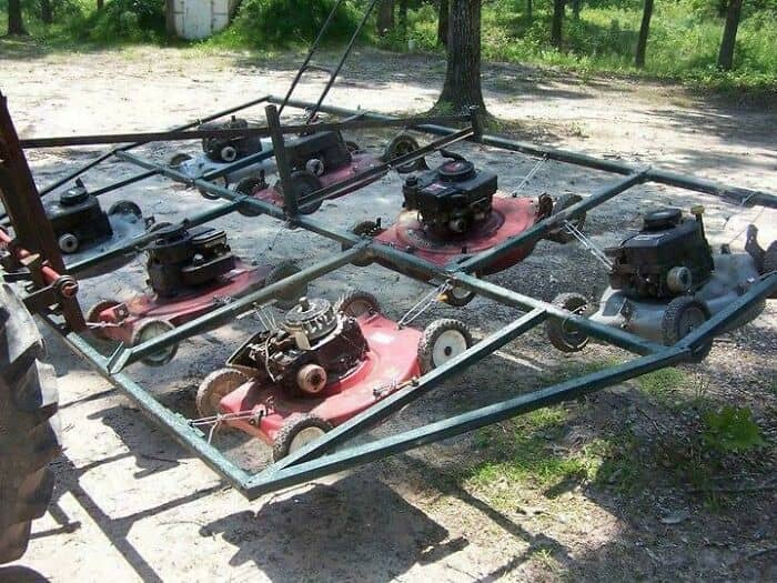 Saw on facebook. Pulled behind a tractor. OP states the mower with the handle was clipped on so he could remove it to mow around trees. I’m not sure how he started the on with no shroud over the flywheel/pull start handle. But if he’s this handy, I’m sure he had his ways.