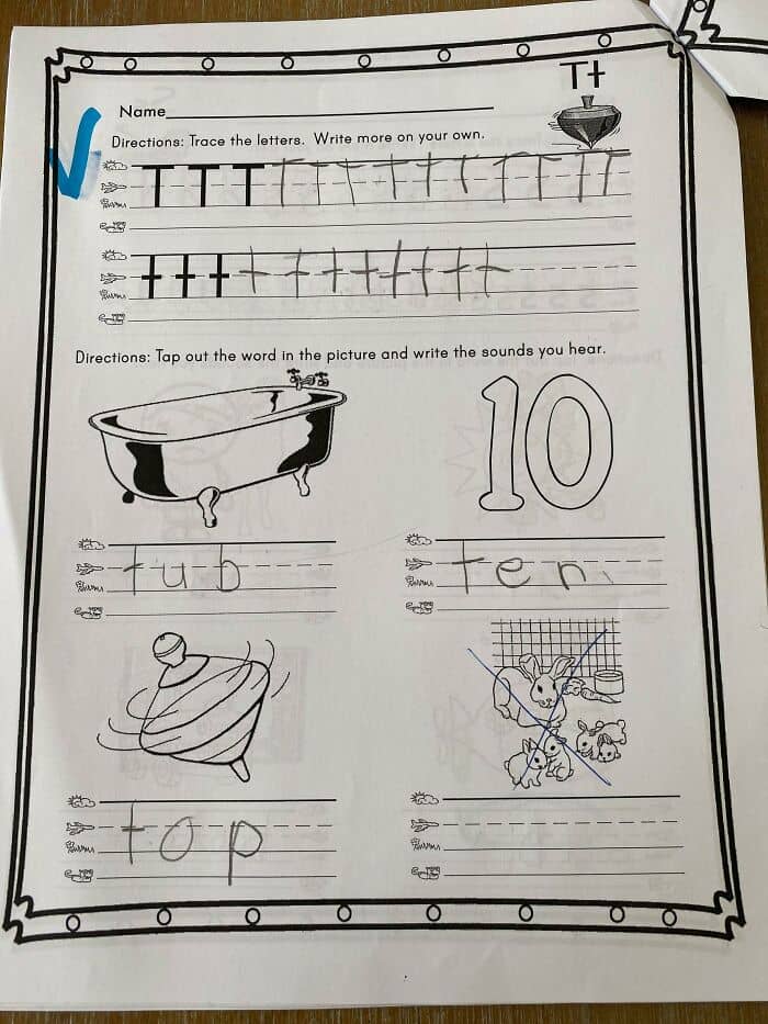 #44 Son’s Kindergarten School Work. What 3-4 Letter Word Is This??