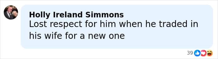 Another added, “I remember photos just like this with his wife… Lost respect for him when he traded in his wife for a new one.”