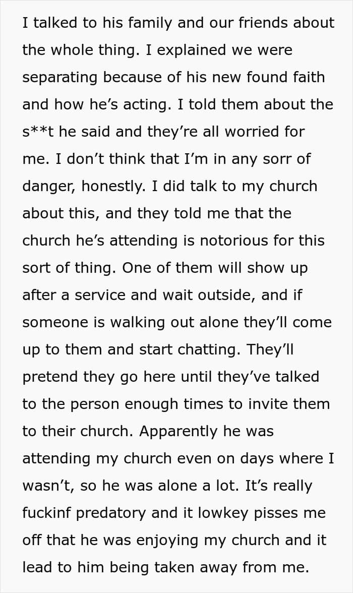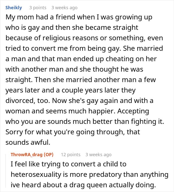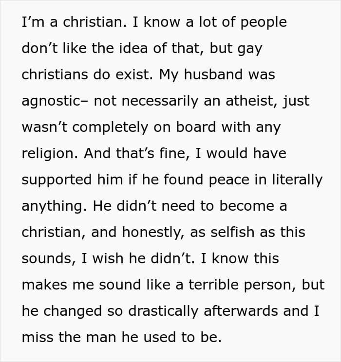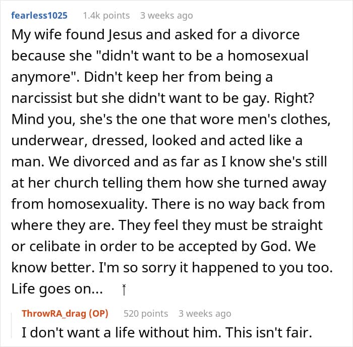 Reddit user ThrowRA_drag thought he knew his husband. But lately, something had been off. What started as a shared journey of faith soon took an unexpected turn, with his partner becoming increasingly devoted to a new church and adopting beliefs that seemed unfamiliar—alarming, even. As their once-happy marriage shifted to a more confrontational state (which the Redditor never anticipated), he found himself questioning everything and ultimately discovered that his husband no longer considered himself gay.