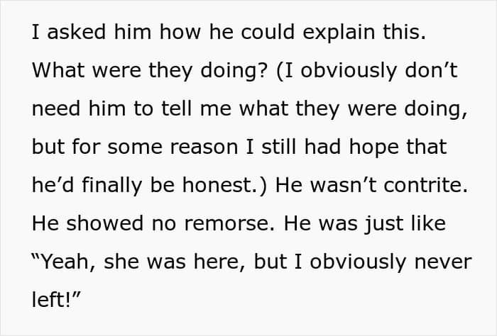 First, she confronted him about leaving their small children alone while she was out working. When he kept deflecting and wouldn’t give her a straight answer, she went looking for evidence. And what she found wasn’t pretty: it broke her trust in him, perhaps forever, and made her question their seven-year-long marriage.