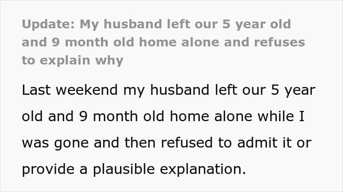 The story began when the wife found out that the husband left their 5-year-old and 9-month-old alone at home
