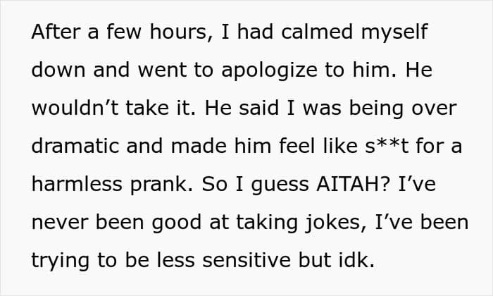 A woman asked the internet for advice after her husband called her “dramatic” for freaking out over a horrible prank. We reached out to the woman in the story via private message and will update the article when she gets back to us.
