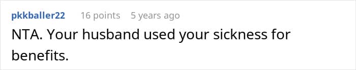 The poster’s husband must have also seen the benefit of using his wife’s illness to gain sympathy and attention, which is why he did it so often. Eventually, the OP had had enough, and she lost her cool after he used her diagnosis yet again in a restaurant in order to get their food delivered sooner.