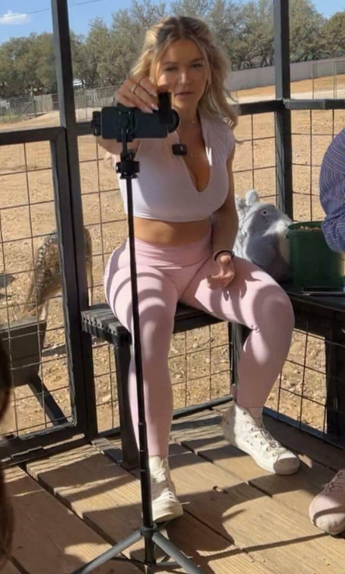 I find this hysterical and embarrassing. That’s on a group trailer zoo tour so she’s fully doing this with a bunch of other ppl on this thing unless she reached out to get a private tour but since you were on this too I’m assuming she’s just doing her thing on a public tour with other people and her tripod set up in front of everyone