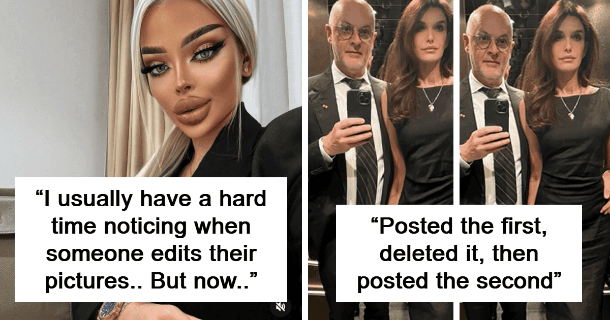 Nowadays it feels like few things on the internet could surprise its users. Yet many images on social media make them raise an eyebrow, nevertheless, often thanks to (unsuccessful) editing. From bent doorframes aligned perfectly with the curve of one’s hips, to lips so voluptuous they defy the laws of human anatomy – there are plenty of examples of people overdoing it with editing tools.